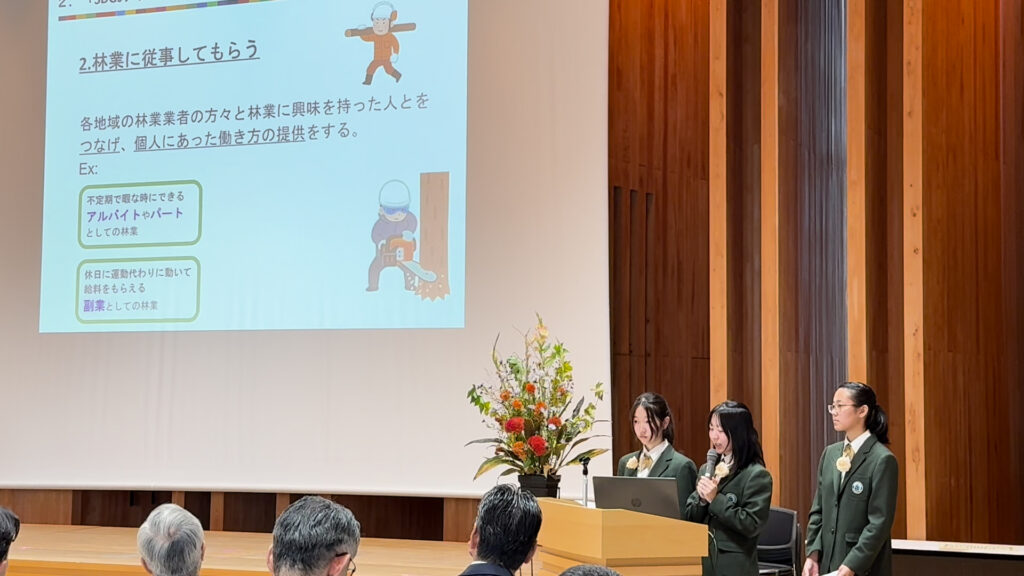 堂々としたプレゼンテーションを通じて、日本の森林課題に真剣に向き合う高校生たちの姿が会場に強い印象を残しました。
